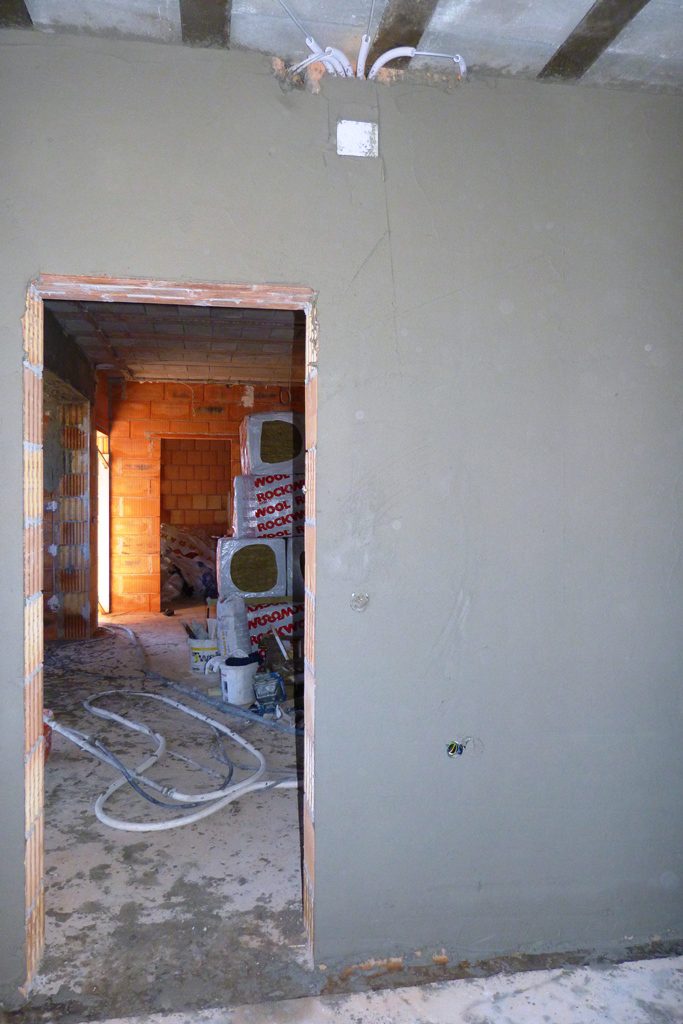 A födém szigeteléséből és a cserepezésből még maradt egy kevés, de elkészült a villanyszerelés a házban. Hamarosan jönnek a vakolók is. A következő nagy fejezet a gipszkartonozás és a nyílászárók megrendelése, berakása.