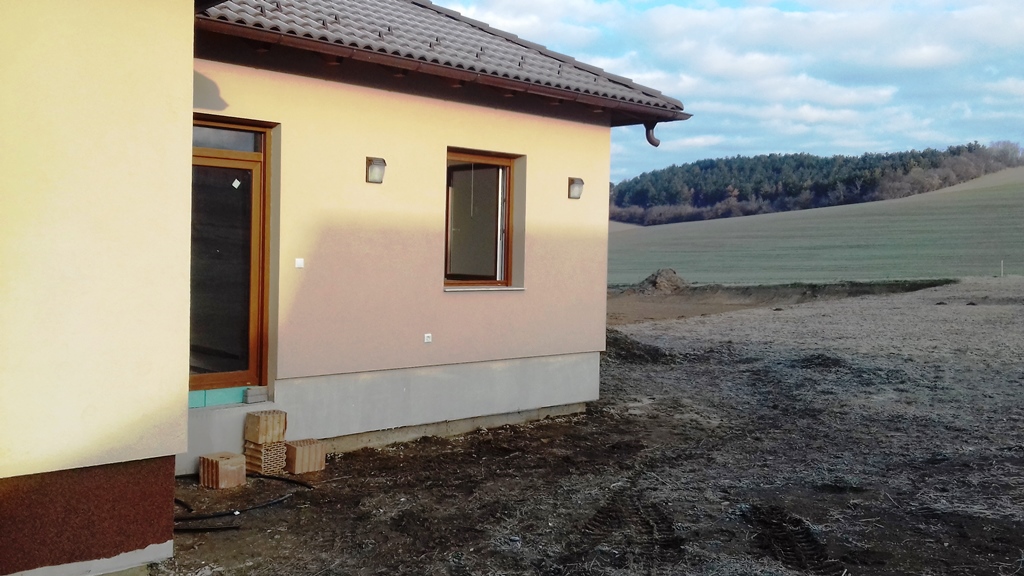 A szaniterek bekötése, a konyhabútor összerakása és a berendezése már nem része az építkezésnek, azt nem posztolom. A jó idő beköszöntével megkezdődő tereprendezést, vízelvezetés rendszerének kialakítását (legalább egy 5 köbös műanyag, földbe süllyesztett tartályra lesz szükségünk a domborzati viszonyok miatt, hogy ne áztassa a csapadék a falakat…), a járdák, terasz stb., és a továbbiak már szintén nem tárgyai a blognak.