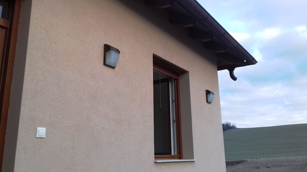 Megtörtént a kültéri lámpák felszerelése és a riasztórendszer kültéri egységének kialakításához szükséges vezetékelés kialakítása.