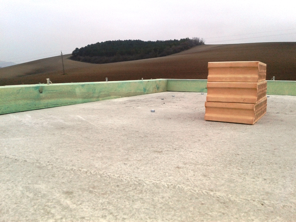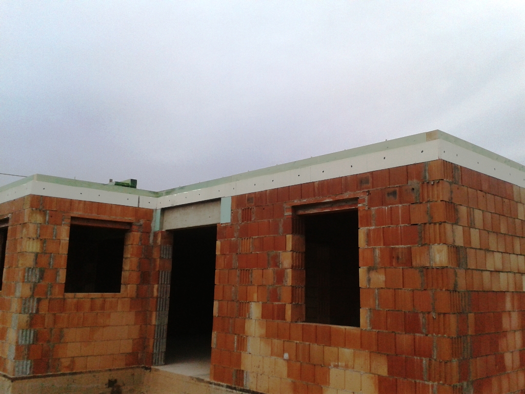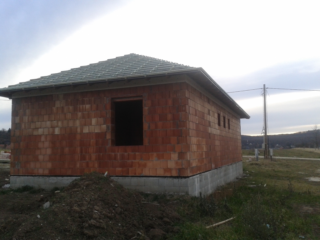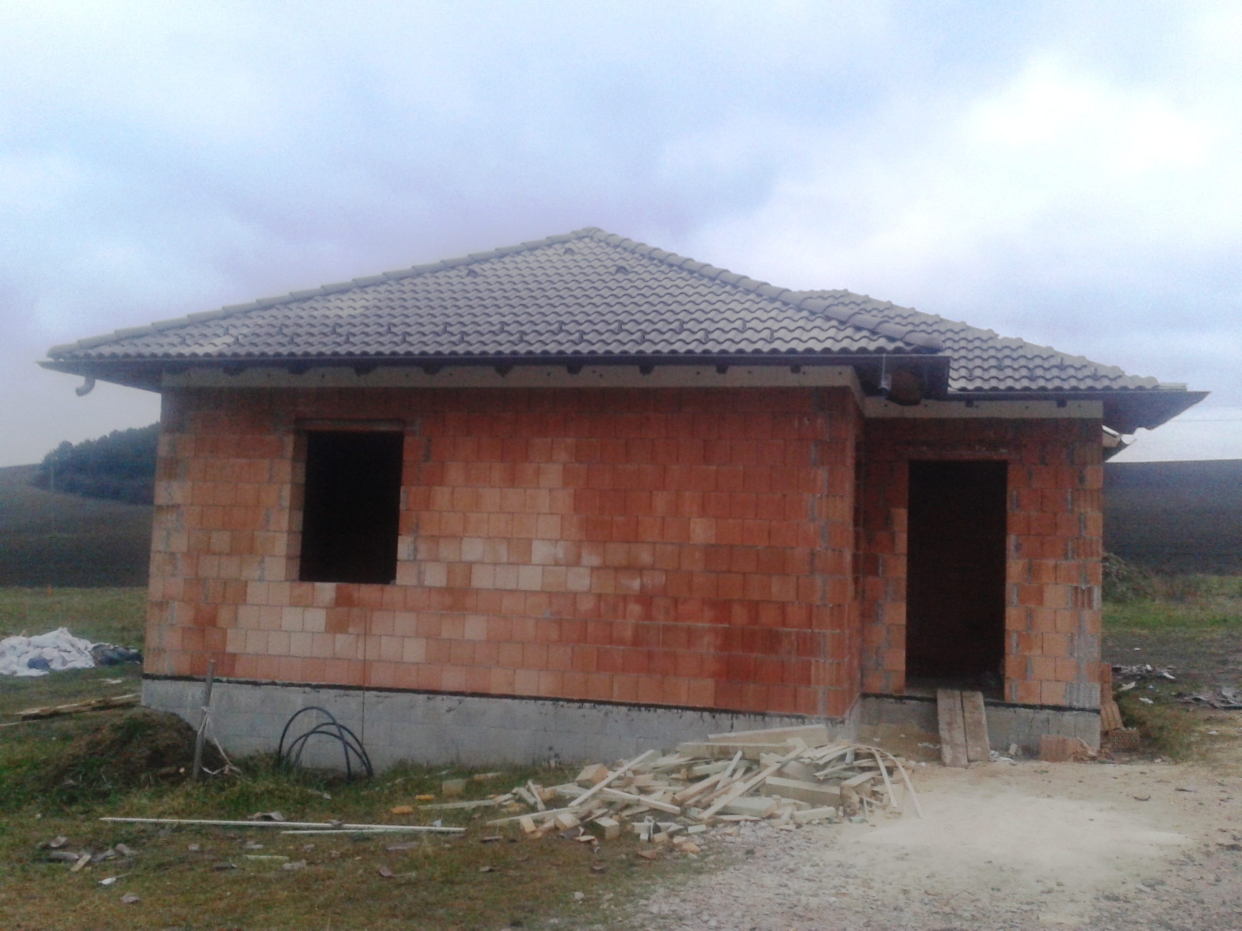 A vízszigetelés készen van, ahogyan a tető is. A vízvezetékek jönnek lassan…