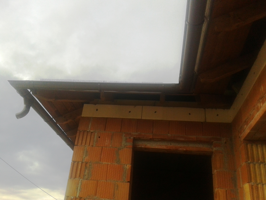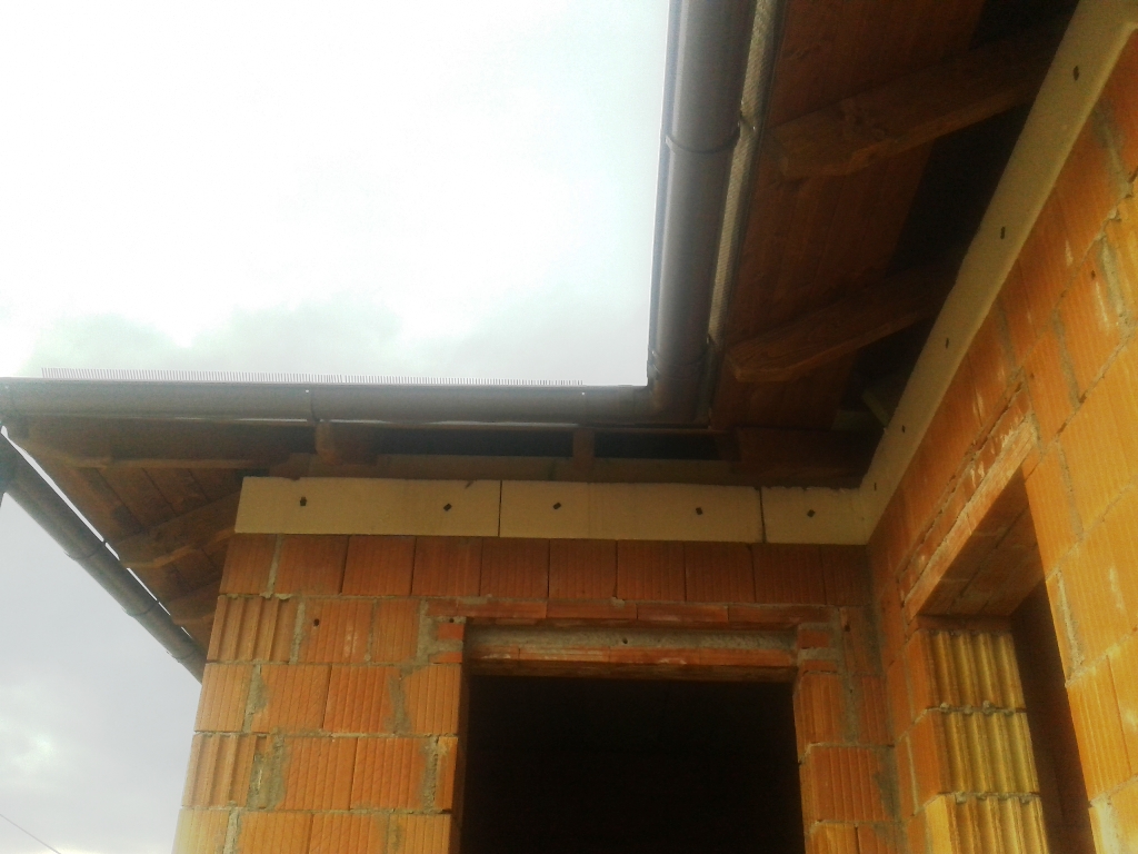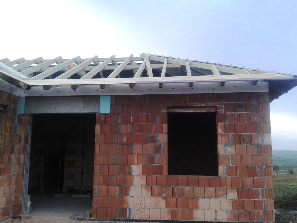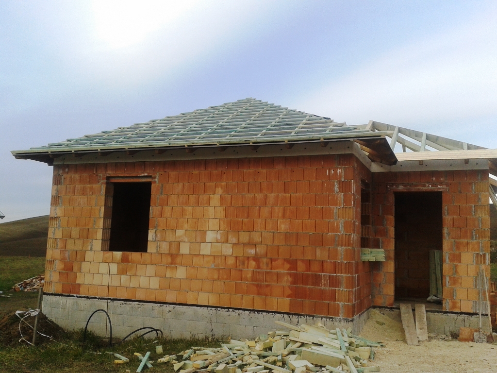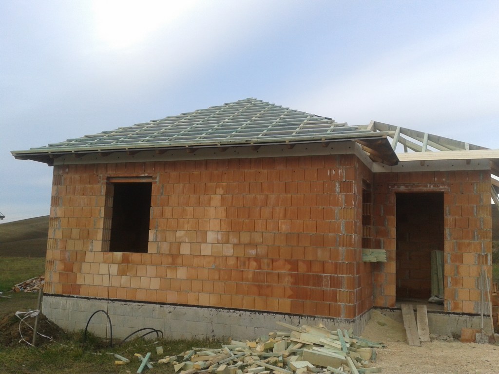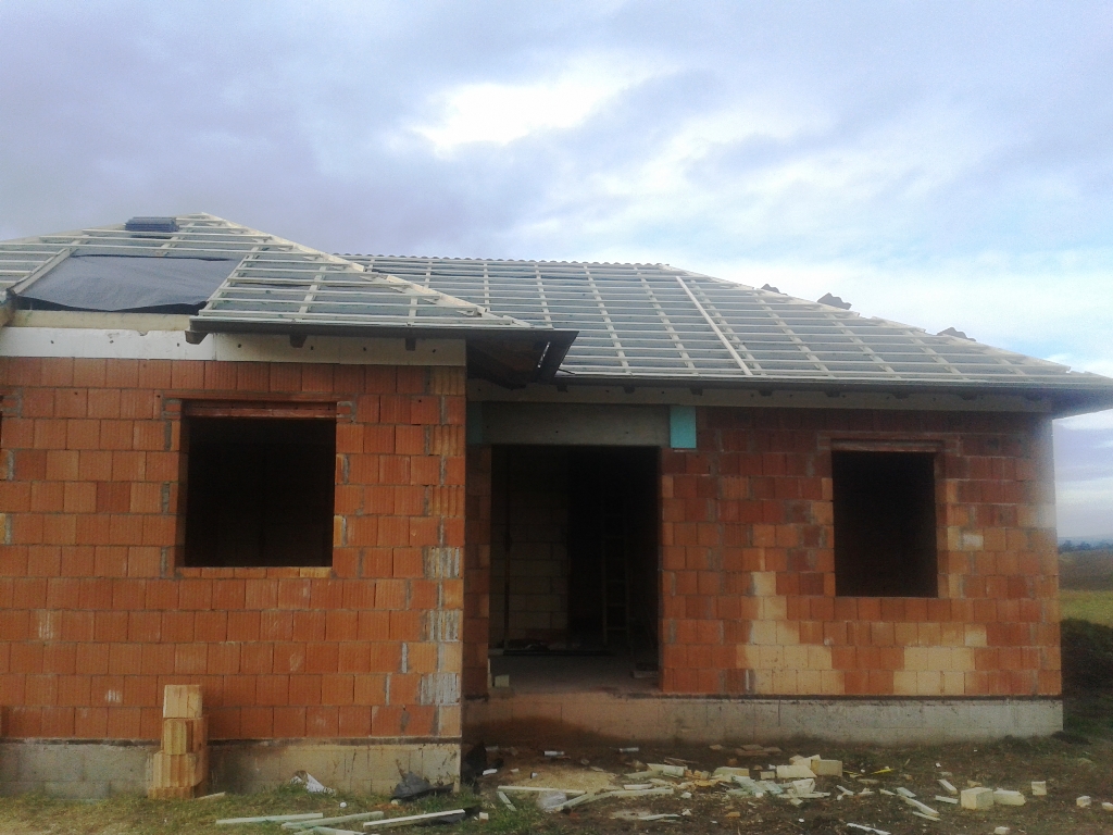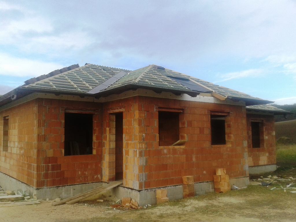A fóliázás és a lécezés után vagyunk. Megkezdődött a cserepezés. Az ereszezés készen van.