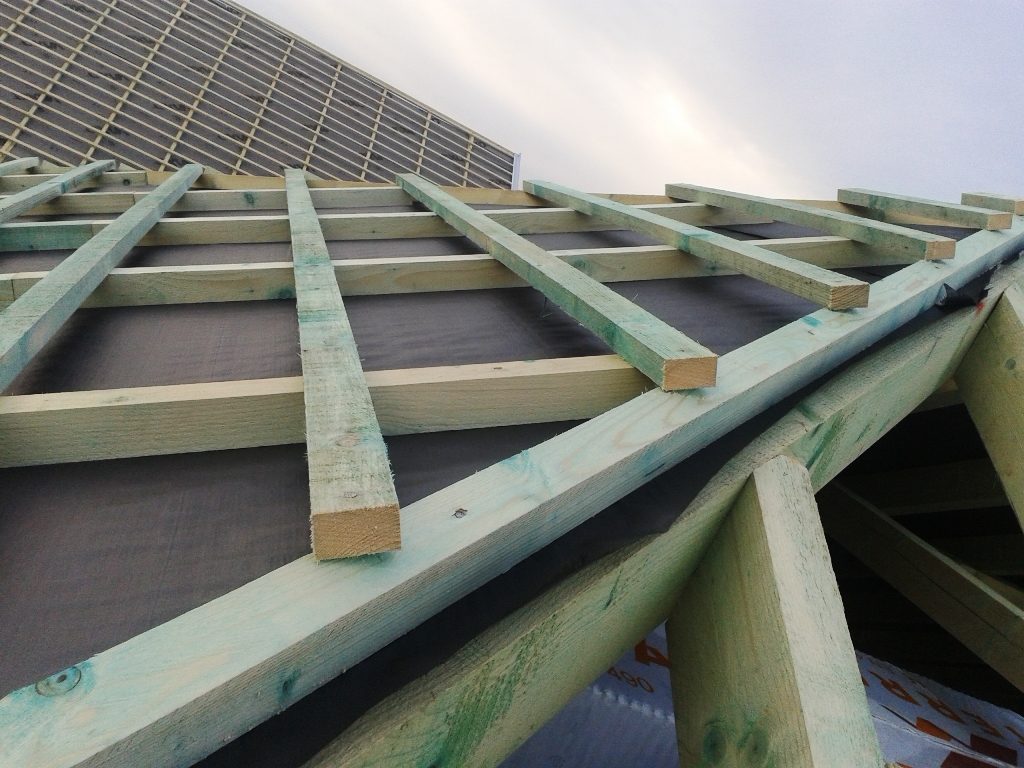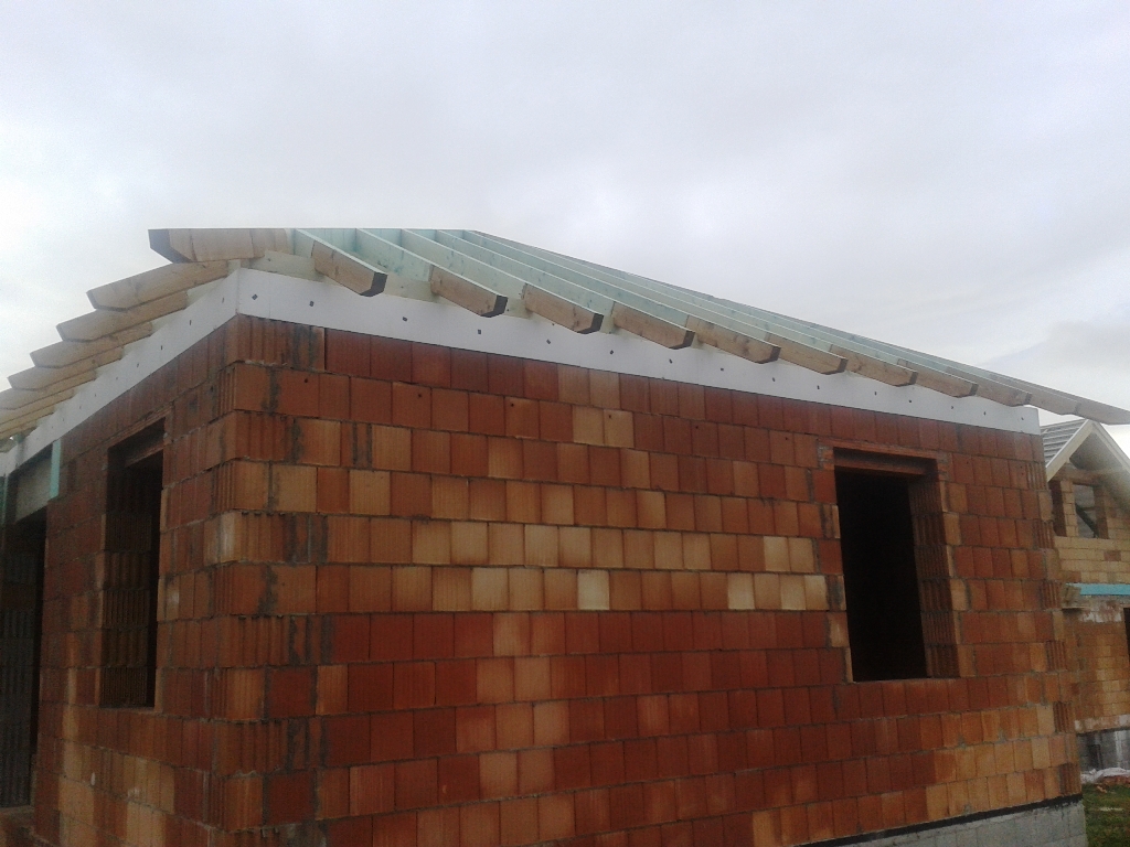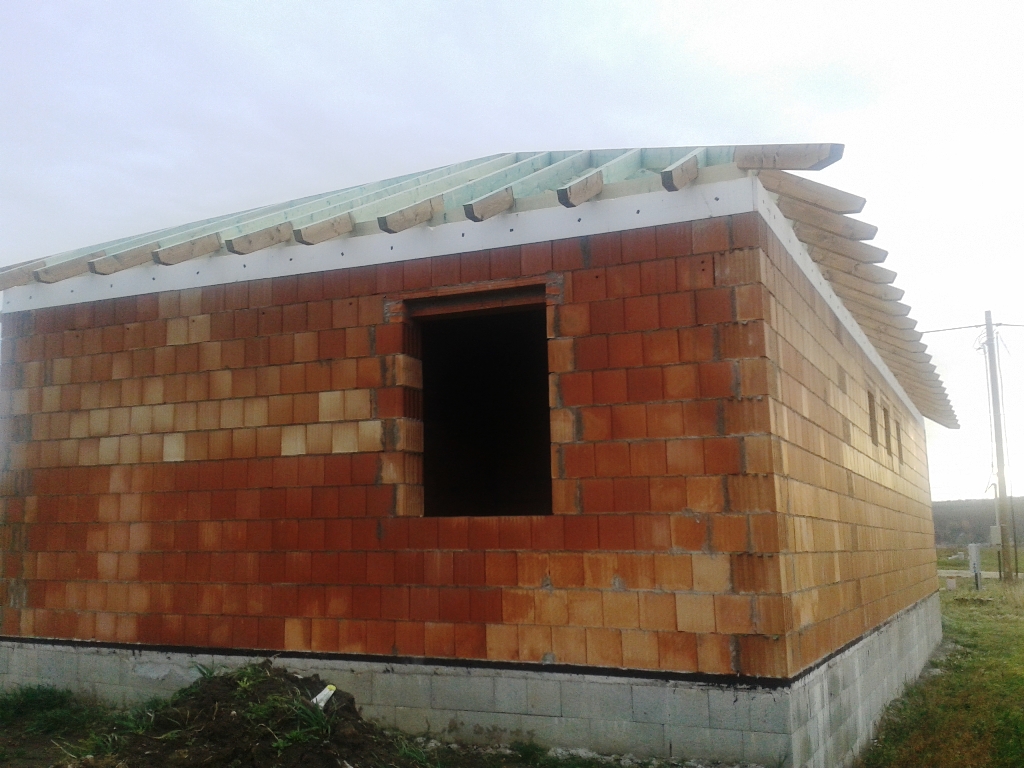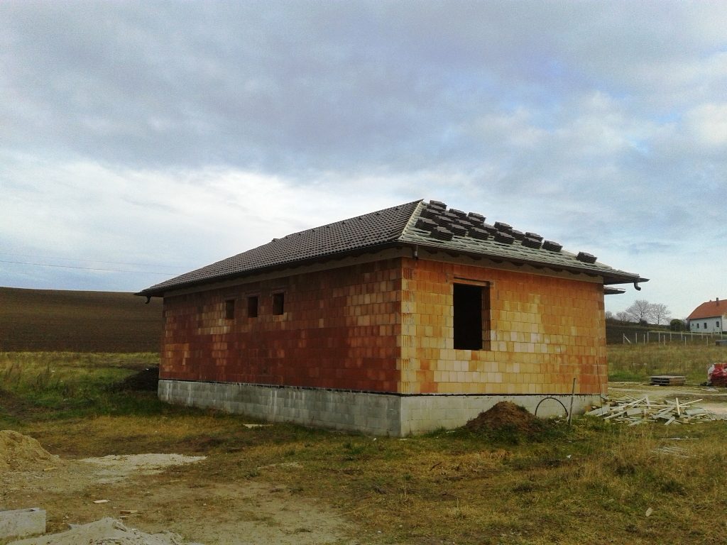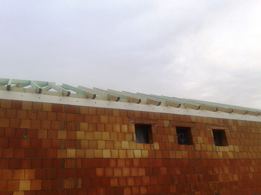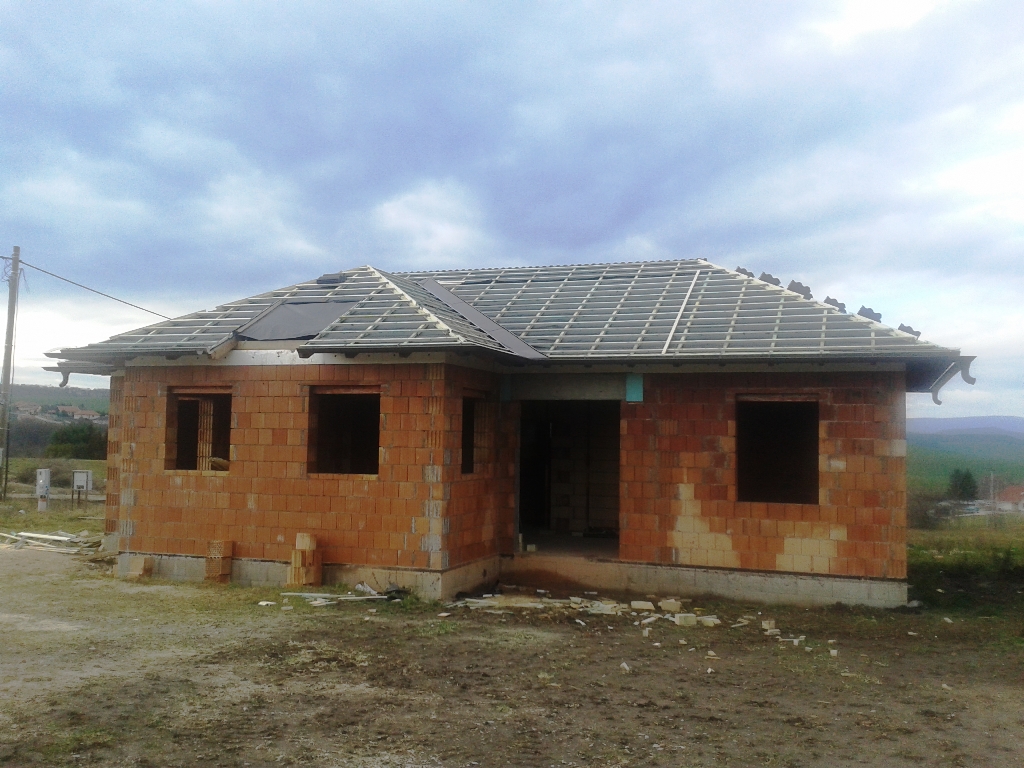 A fóliázás és a lécezés után vagyunk. Megkezdődött a cserepezés. Az ereszezés készen van.