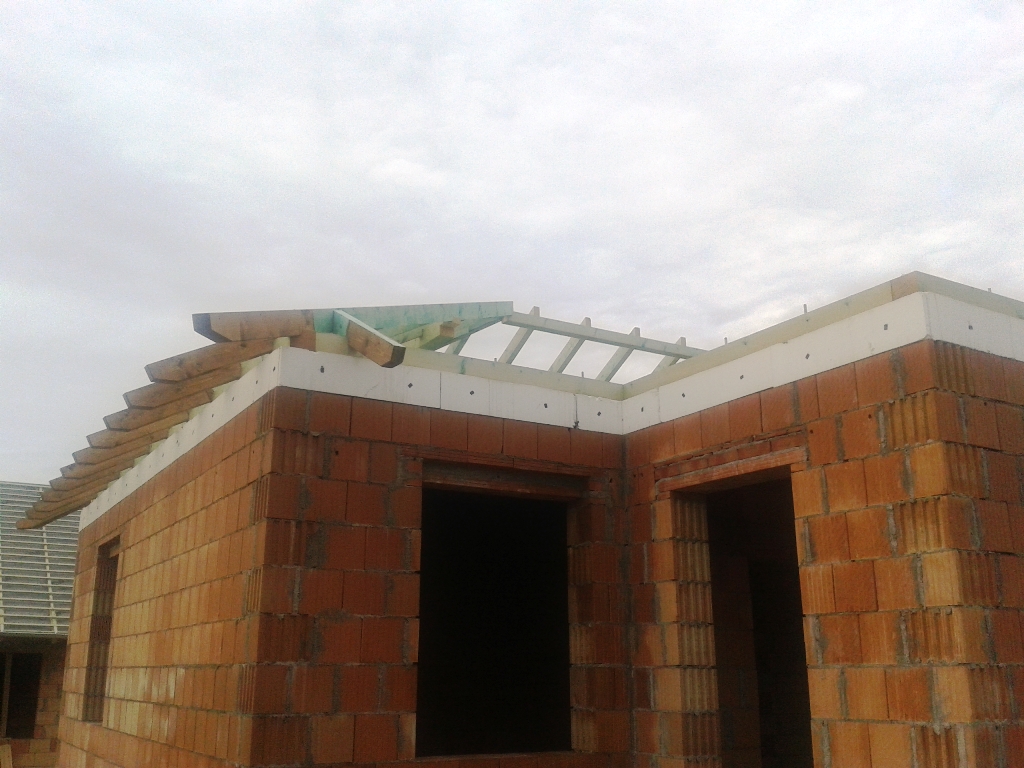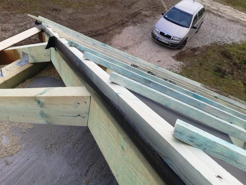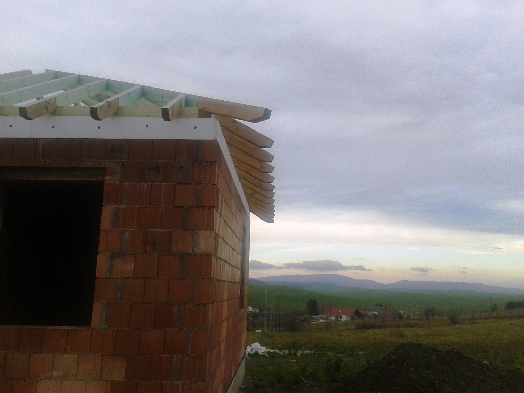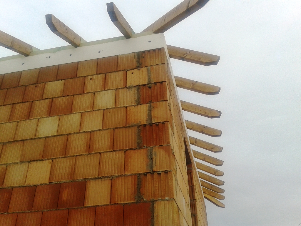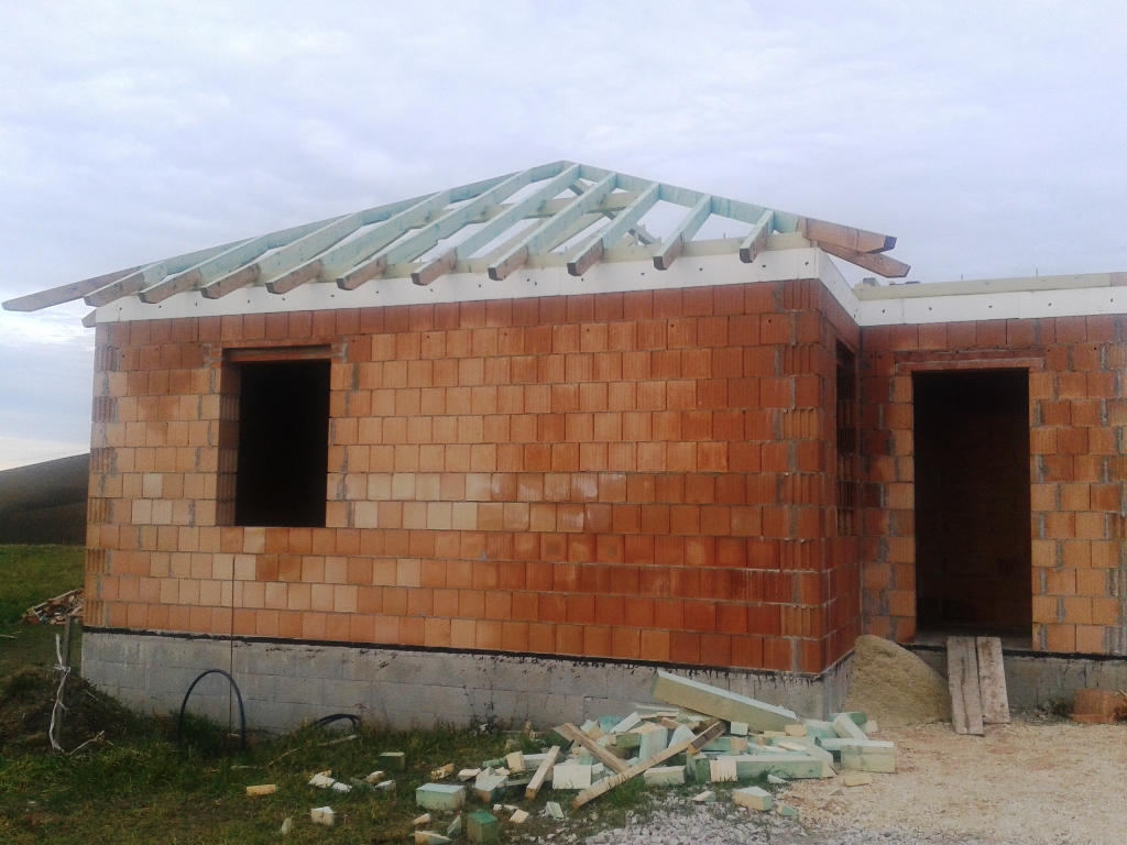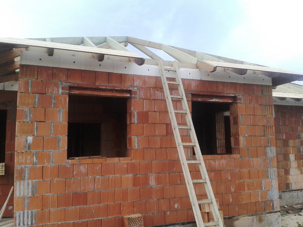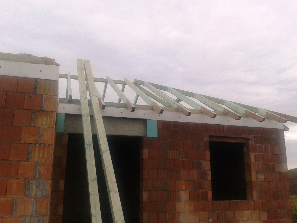 A fóliázás és a lécezés után vagyunk. Megkezdődött a cserepezés. Az ereszezés készen van.