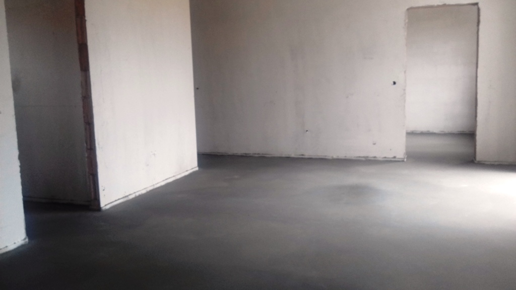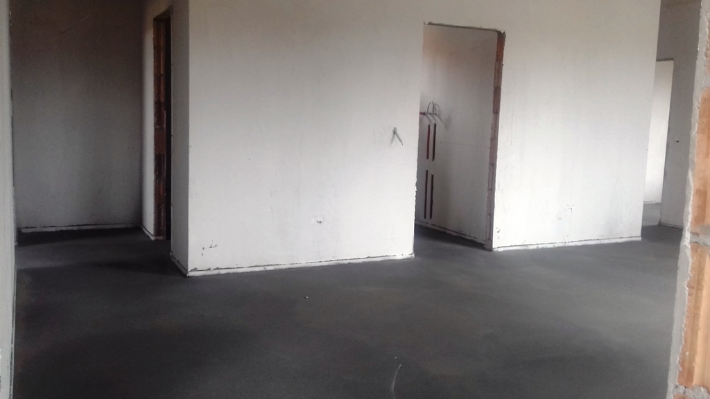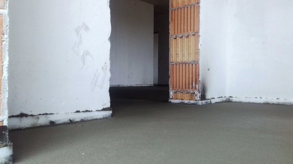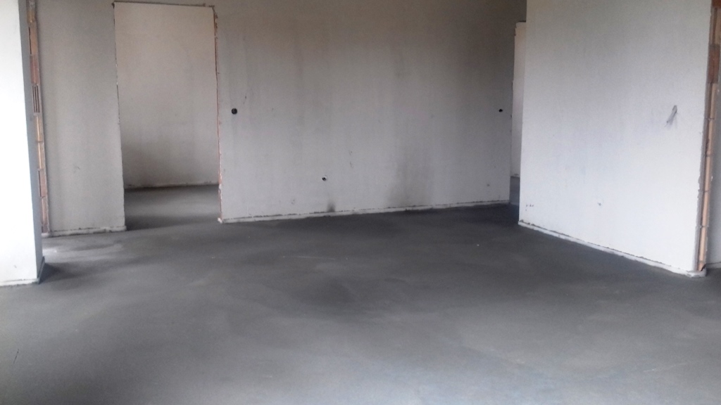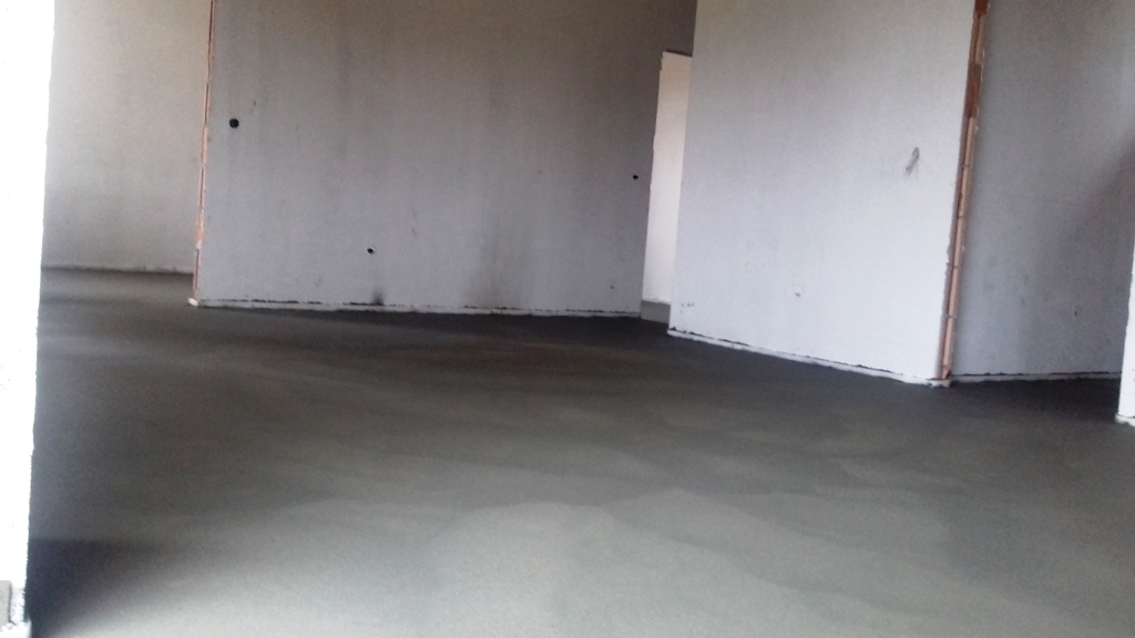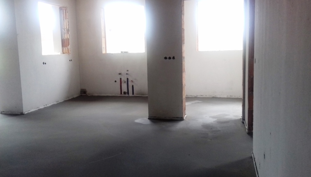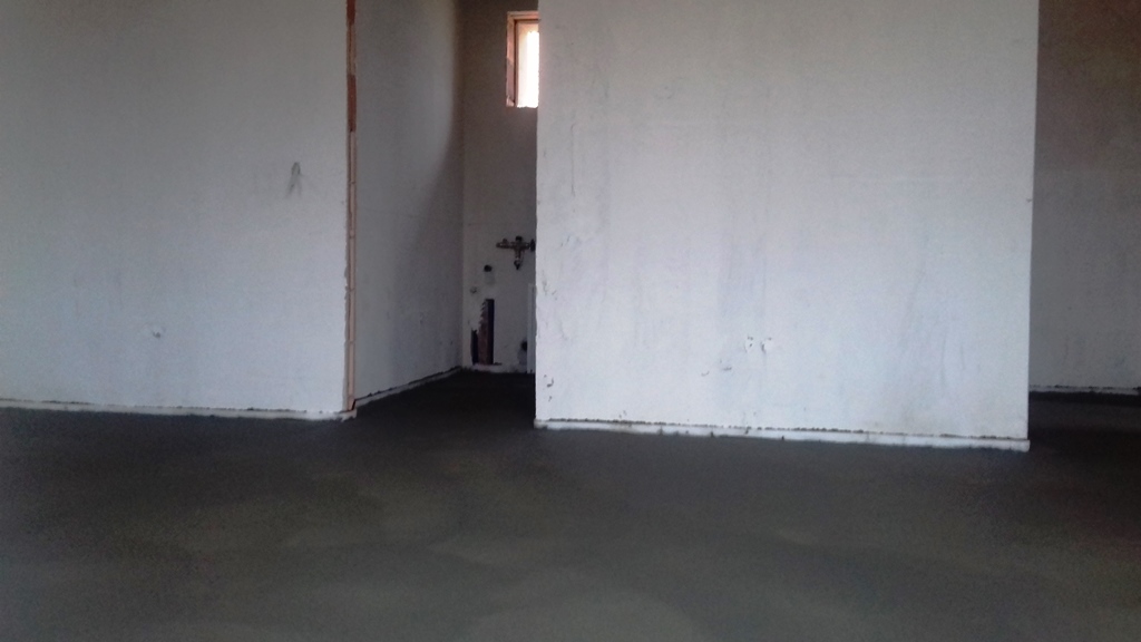 Ma megtörtént az aljzat estrich betonozása, eltűntek a sárga padlófűtéscső-kígyók. Íme: