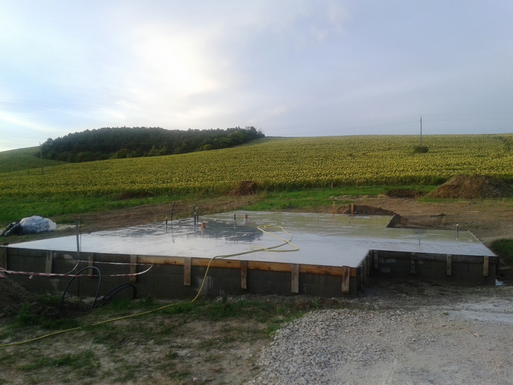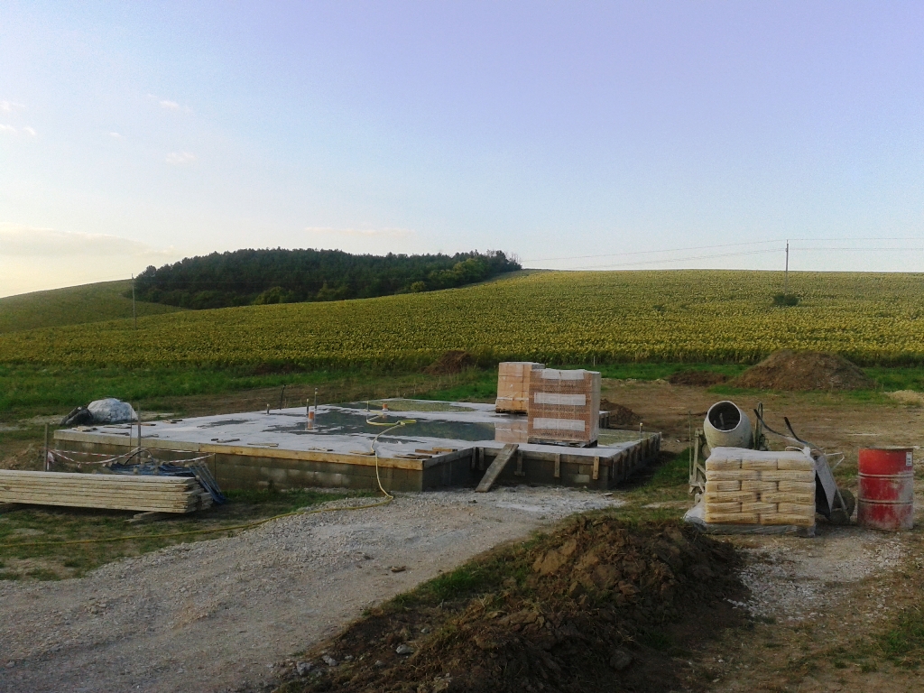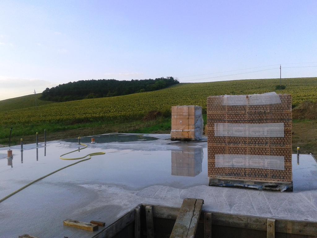 Első körben ma este öntöztük utoljára az alapot, ezután fog következni a vízszigetelés felhordása és kb. 1 hét múlva a falazás.