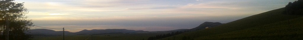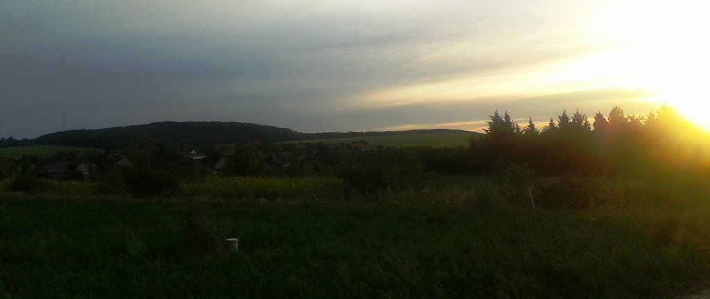 Most már naponta csak 4-5 alkalommal öntözzük az alapot. A beton elméleti kötési ideje elvileg 28 nap, de már 1,5-2 héttel korábban eléri azt az állapotot, hogy lehessen tovább dolgozni vele. Itt van mára még egy utolsó “vizes” kép, két bónusz naplementével a majdani ablakok helyén kitekintve. Csoda.