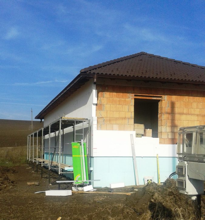 Megkezdődött a külső szigetelés. A belső aljzatszigetelés is folyik, a négy lakószoba már készen van. Jövő héten lesznek a gépészeti munkák (vízvezeték, padlófűtés, gázcsövezés).
