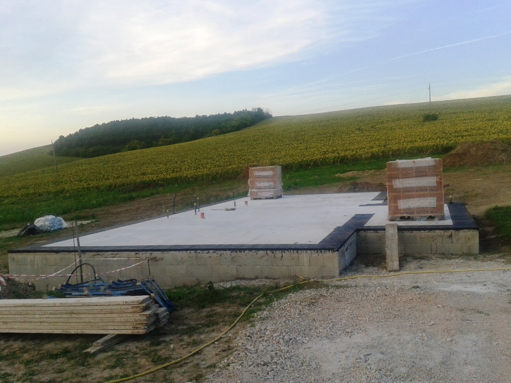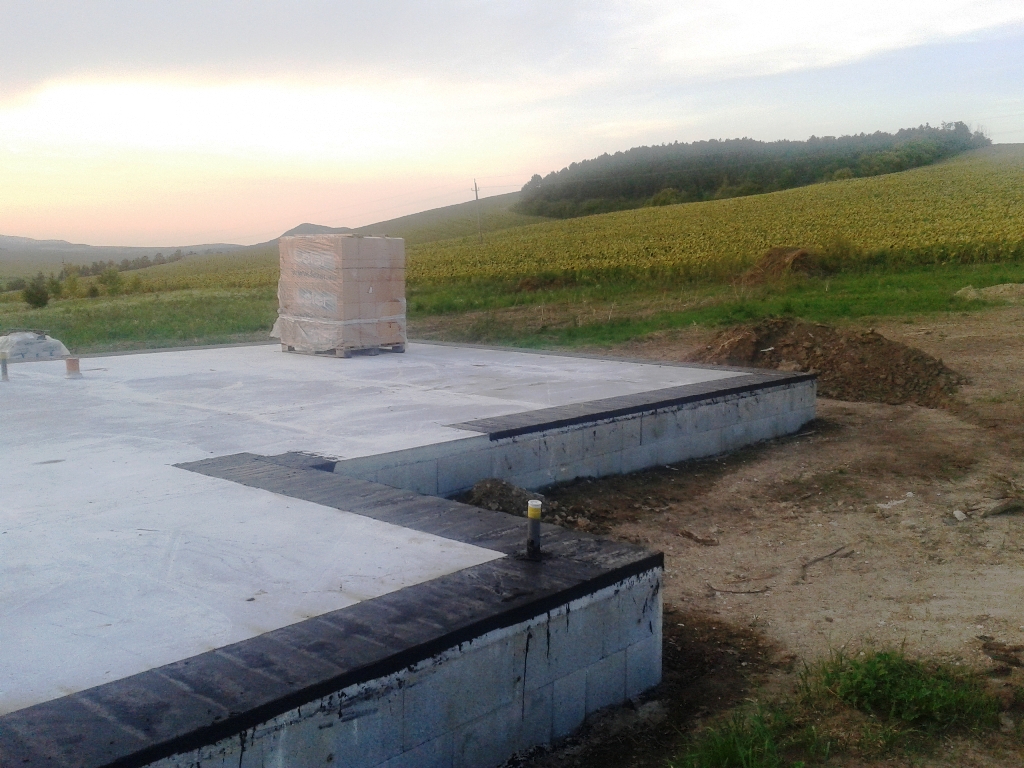 A vízszigetelés készen van, ahogyan a tető is. A vízvezetékek jönnek lassan…